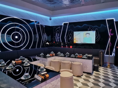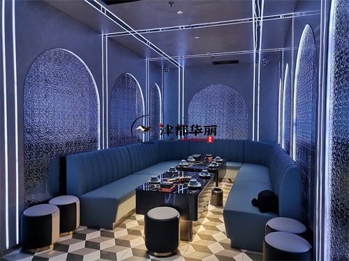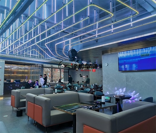 今天分享的是銀川鼎龍餐廳設計裝修項目實景鑒賞,該項目以“未來感與時尚感深度融合”為設計核心,致力于打造一個兼具餐飲與娛樂功能的沉浸式空間。在視覺設計上,空間大量運用霓虹光源與幾何元素,例如墻面環繞的環形燈帶、立體幾何裝飾結構,并以高對比度的黑白主色調為基底,成功營造出極具賽博朋克風格的前衛氛圍,精準匹配年輕消費群體對潮流社交空間的需求。功能布局上,該餐廳巧妙融合KTV包廂的休閑屬性與傳統餐廳的用餐功能,采用卡座與餐桌一體化的設計方案,在保障用餐便捷性的同時,充分滿足消費者的社交娛樂需求。銀川裝修公司津都華麗團隊在本次項目中,深度踐行潮流沉浸式餐飲空間的設計理念。