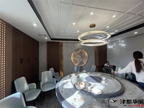 今天分享的是銀川金龍回坊火鍋店裝修設計實景,這家火鍋店裝修設計風格以新中式國潮風為核心,既保留了傳統餐飲空間的雅致底蘊,又通過現代手法注入年輕活力,精準契合了當下火鍋店裝修設計中“文化賦能+體驗升級”的趨勢。從包間區域來看,火鍋店裝修設計的“輕奢質感”被巧妙落地:墻面采用木紋飾面板搭配金色葉片裝飾,既借由木質元素傳遞中式空間的溫潤,又以金屬細節提升宴請場景的精致感;圓形餐桌搭配帶有新中式線條的軟包座椅,淺白與墨綠的配色既呼應了傳統美學的雅致,又通過軟包材質保證了用餐的舒適感;頂部的圓形吊頂+水晶吊燈組合,既以“天圓地方”的傳統意象強化空間儀式感,又用燈光的暖調氛圍消解了商務包間的冷硬。