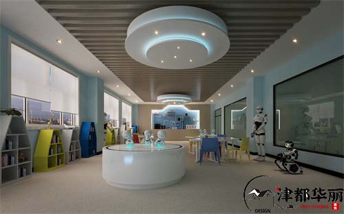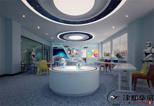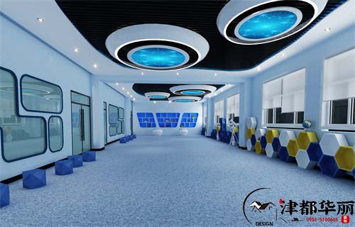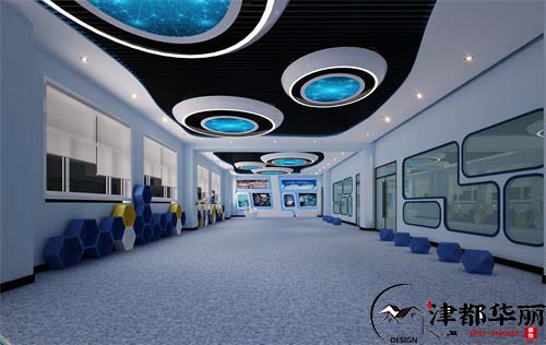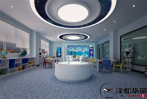 今天分享的是編程教室裝修設計案例,應用藍白線條打造出一個富有科技感的教室設計,頂部設計仿佛在浩瀚無垠的宇宙中飛行的飛船,周邊燈光環繞,尤如夜空中最亮的星一樣奪目。墻面上做了簡介讓學生可以多方面的認識學校。從教室穿出便來到了走廊,走廊使用縱向鋁方通吊頂,地面也設計帶有箭頭的標識,外加藍色燈條門框,整體猶如時空隧道一般引領著學子走向高端技術的未來。走廊兩側還有校園文化展示加深學校人文氛圍感,藍黃顏色搭配明亮中帶著沉穩的感覺。機器編程技術融合了電子、造型、傳感器、機械、人工智能等當今多項領域的先進技術,它不僅體現了對未來科技發展的認識,也是培養新世紀人才的重要舉措。