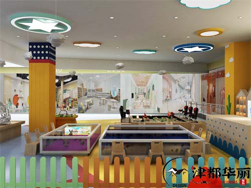 黃色是陽(yáng)光快樂(lè),充滿活力的顏色,所以游樂(lè)場(chǎng)的設(shè)計(jì)主要以黃色為主色調(diào),其他色彩做點(diǎn)綴,這樣的設(shè)計(jì)使空間看起來(lái)會(huì)更加整潔。燈具都是富有童趣的設(shè)計(jì),是小朋友所喜歡的形狀,材料上的選擇也是非常嚴(yán)格的,選用的都是環(huán)保材料,可以放心的讓孩子在這里盡情的玩耍。