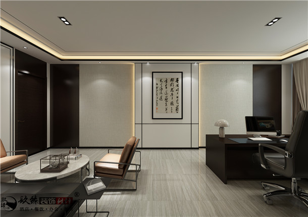 本案寧東鴛鴦湖電廠辦公大樓大廳給人一種寬闊的形象氣質,頂面條形吸頂燈以不規則的形態展現,打破傳統設計,點綴空間。辦公樓空間裝修設計中領導辦公室的環境也非常重要,通常這些辦公室能展示企業實力。